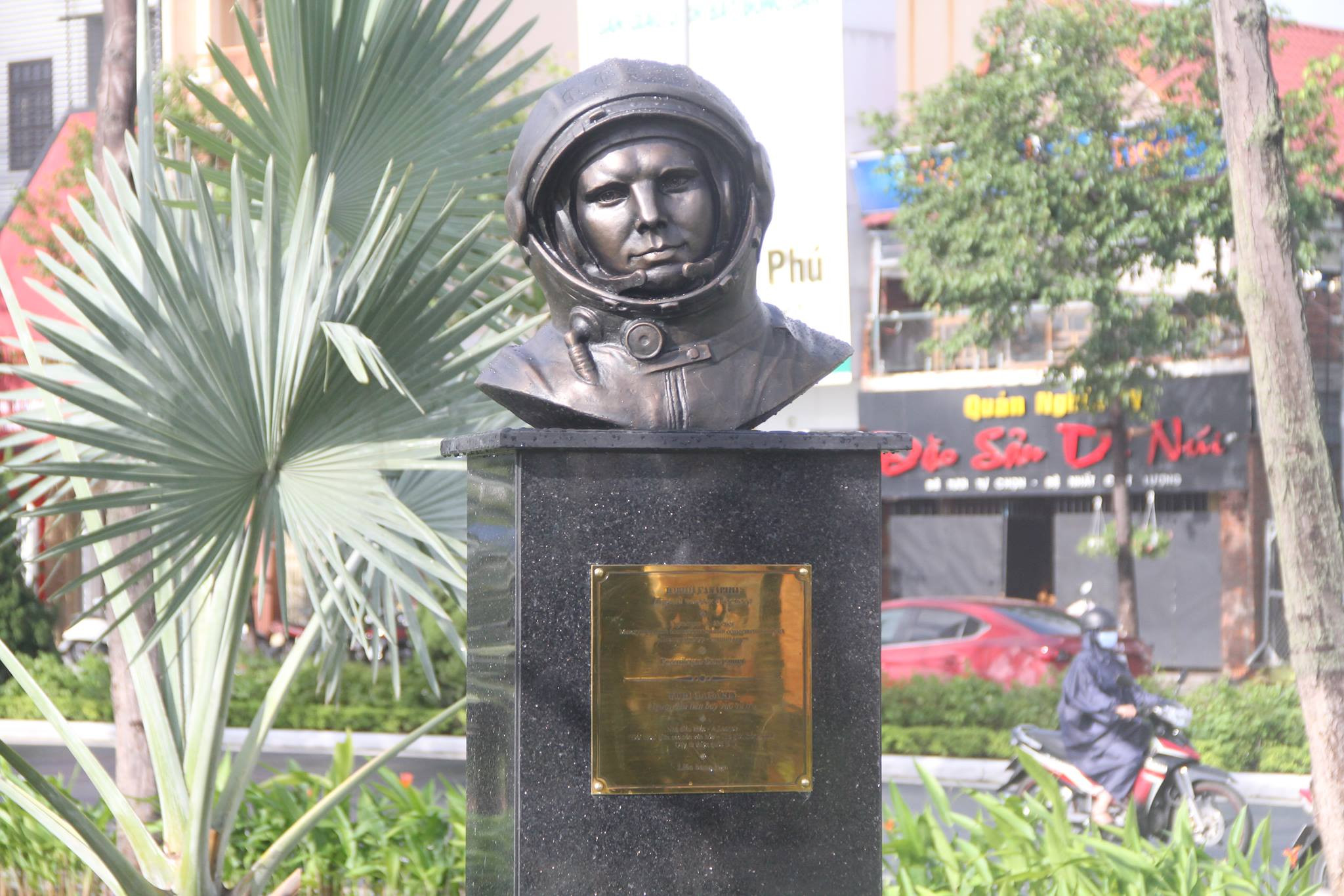 Tượng bán thân của phi công vũ trụ Liên Xô, đại tá Yuri Gagarin tại quần thể Công viên APEC 2017, Đà Nẵng. (Ảnh: Phạm Thịnh)