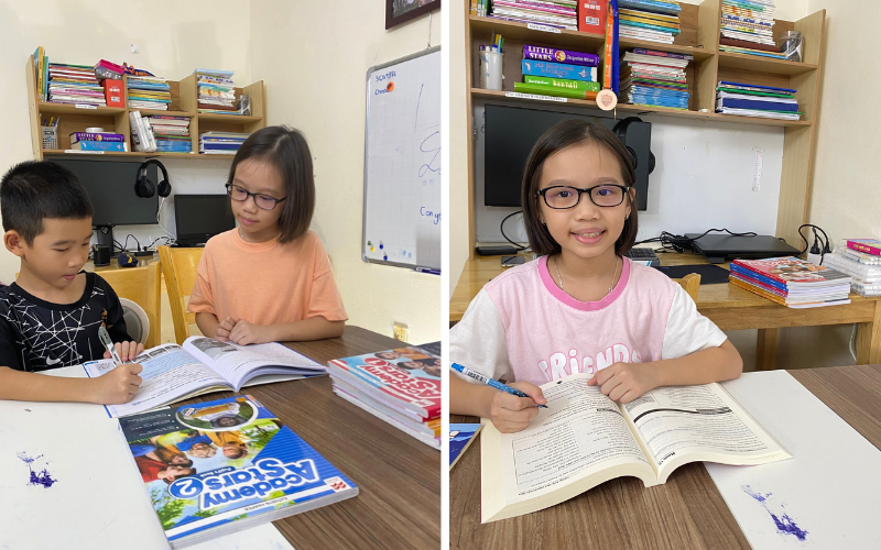 Theo chị, Su Hào nói tiếng Anh linh hoạt và tự tin nhờ tiếp xúc với ngôn ngữ qua các hoạt động đời sống như đọc sách tiếng Anh, xem video hoạt hình và theo dõi các kênh YouTube tiếng Anh. Đến khi thấy con cần môi trường giao tiếp bài bản hơn, năm bé lớp 2, chị mới cho đi học thêm tiếng Anh mỗi tuần 2 buổi.