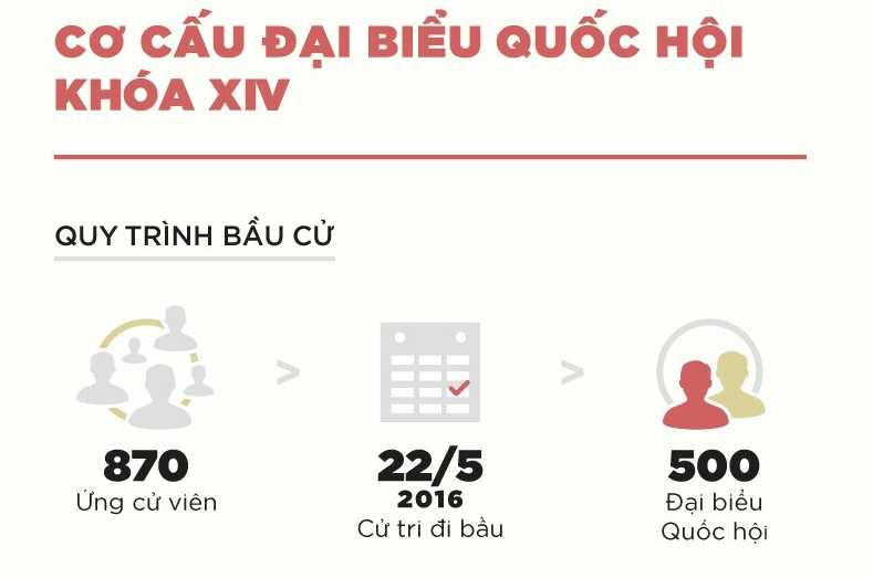 Ngày 22/5, cử tri trên toàn quốc sẽ bầu cử để chọn ra 500 đại biểu Quốc hội khóa XIV, trong đó 197 đại biểu ở Trung ương, 303 đại biểu ở địa phương.
