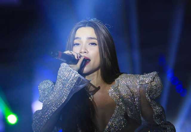 Biểu cảm của Hồ Ngọc Hà khi trình diễn trên sân khấu hải ngoại