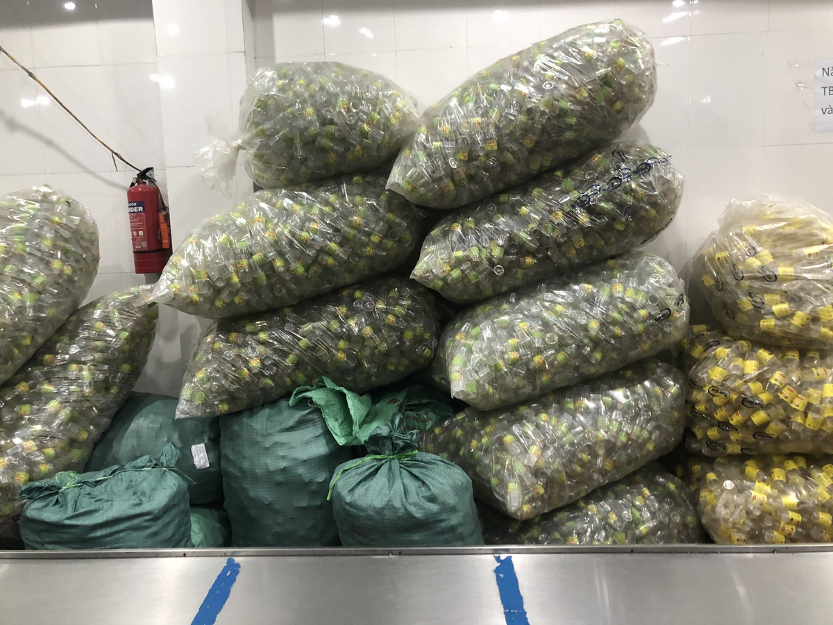 Các hũ nhựa dùng để đựng sa tế đựng trong rất nhiều bịch nilon.