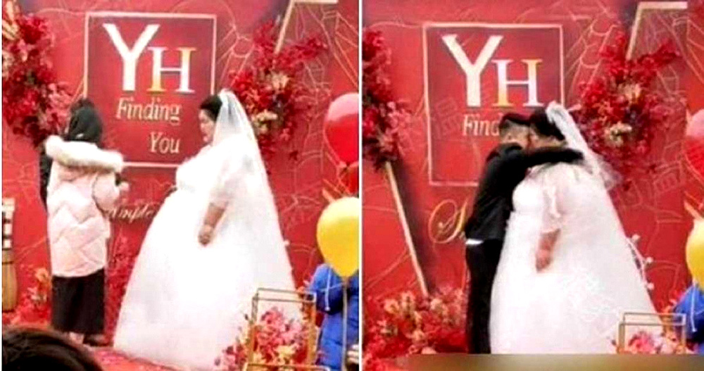 Chú rể ôm vợ, an ủi cho đến khi cô bình tĩnh lại để tiếp tục thực hiện nghi thức cưới.