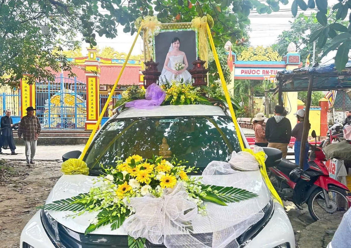Thế nhưng, trước hôn lễ chưa đầy nửa tháng, cô dâu Hồ Thị Hiếu đột ngột qua đời. Bức ảnh cưới lẽ ra sẽ được treo trong ngày hạnh phúc nay lại được đặt trên xe hoa tang đưa cô về nơi an nghỉ cuối cùng, để lại nỗi đau không gì bù đắp cho chồng sắp cưới.