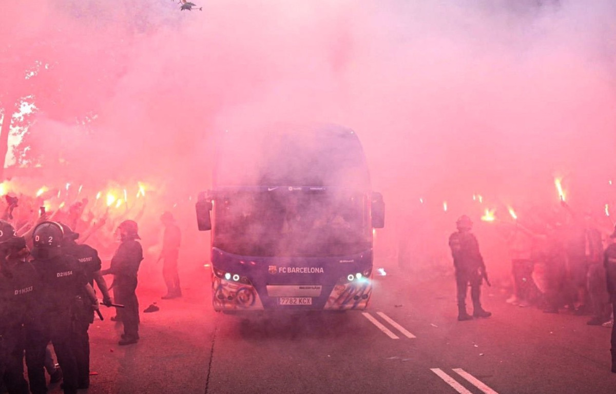 Theo Marca, xe buýt chở các thành viên của Barcelona bị cổ động viên tấn công trên đường đến sân Olimpico, nơi diễn ra trận tứ kết lượt về với PSG. Những kẻ quá khích ném hàng loạt pháo sáng, gạch đá về phía chiếc xe buýt, kèm theo những câu chửi rủa. Tuy nhiên, đó lại chính là những cổ động viên của đội chủ nhà Barcelona.