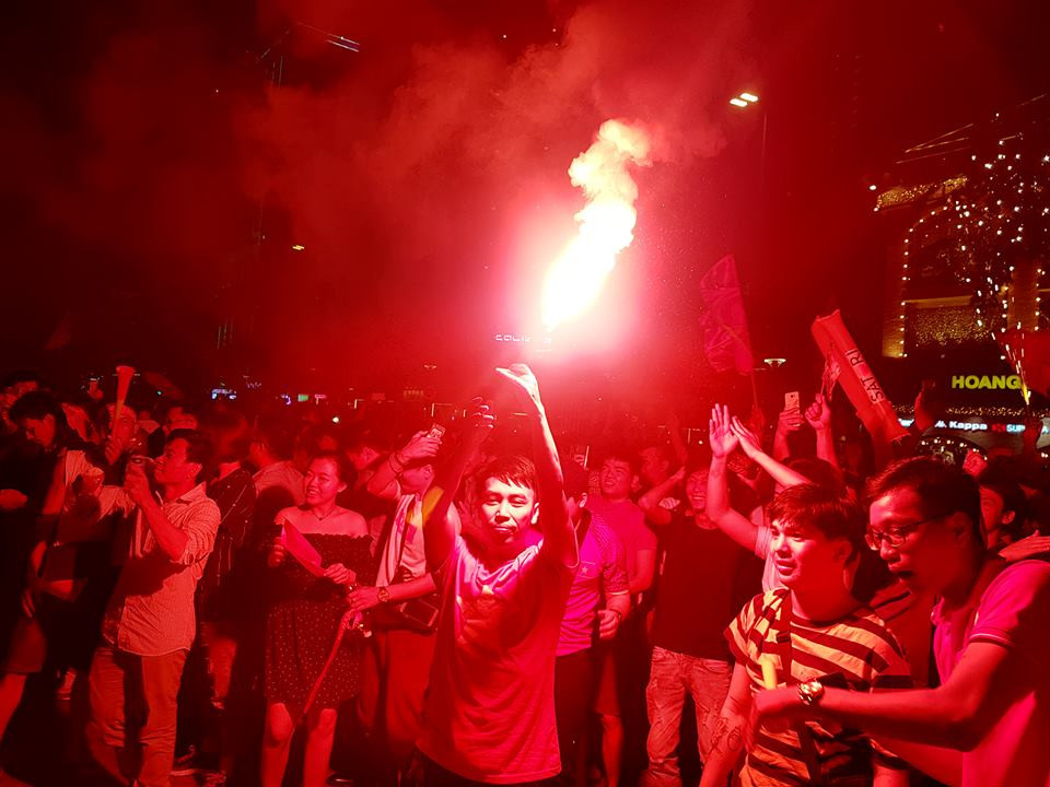 Người hâm mộ vỡ oà cảm xúc trên các cung đường ở TP.HCM khi tuyển VN chiến thắng Philippines dành vé vào chung kết.