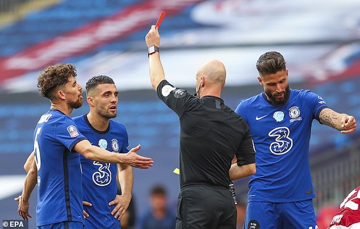 Trọng tài Taylor rút thẻ đỏ đuổi cầu thủ Chelsea.