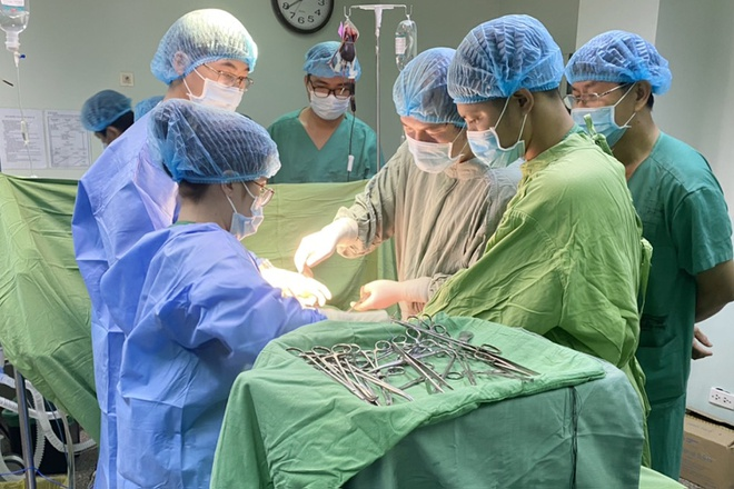 Hơn 4 giờ trong phòng mổ, bác sĩ tiến hành khâu vết rách bàng quang thành sau, mở bàng quang ra da, tiếp đến là khâu cầm máu buồng trứng trái, cắt tử cung toàn phần chừa 2 phần phụ, khâu nối âm đạo, kiểm tra cầm máu.