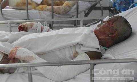 Ngay sau đó, chị Huệ nhảy từ lầu 1 xuống đất rồi được người dân đưa vào bệnh viện Chợ Rẫy cấp cứu trong tình trạng nguy kịch. Khi được đưa vào bệnh viện Chợ Rẫy cấp cứu, chị Huệ đã bị phỏng 94% toàn thân độ 2,3,4; trong đó có đến 91% độ 3 và 4 (độ nặng). Ngoài ra, bệnh nhân còn bị phỏng hô hấp.