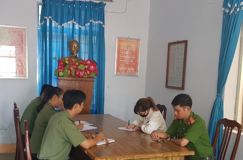 Công an làm việc với H. về những bình luận sai sự thật trên Facebook.