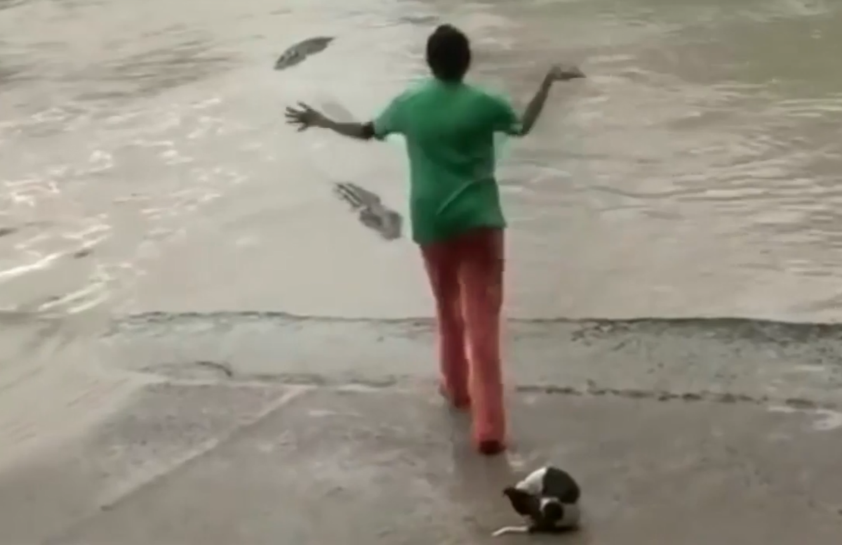 Con cá sấu đang mon men lại gần bỗng tháo chạy khi bị người phụ nữ cầm dép hù doạ.