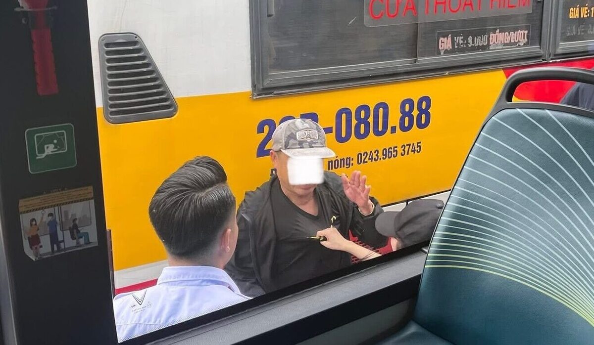 Tác giả kể lại câu chuyện mình chứng kiến như sau: "Hôm nay tại bến xe buýt Mỹ Đình (Hà Nội), xe chuẩn bị khởi hành thì tôi nghe thấy tiếng hét từ xe bên cạnh. Tò mò ngó ra thì thấy một cháu gái sinh viên đang liên tục to tiếng, giữ áo một người đàn ông. Lúc đầu, người này định bỏ đi nhưng bị cháu gái giữ lại và còn gọi thêm cả lái xe và phụ xe vào cuộc