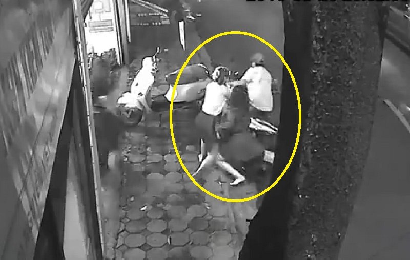 Thấy vậy, chị Y. cùng mọi người lập tức lao ra để giằng lại chiếc xe, một nhân viên khác của tiệm còn lấy chồng ghế nhựa ném vào tên trộm. Mặc dù bị phát hiện, tên cướp vẫn cố leo lên xe để phóng đi nhưng chủ nhân chiếc xe và chủ tiệm vẫn kiên quyết giữ lại khiến tên chiếc xe bị đổ và tên trộm ngã ra đường.