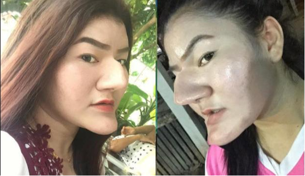 Như cô gái dưới đây là một ví dụ. Tài khoản cá nhân có tên Khoolarpthip Phoommarin ở Thái Lan khiến không ít người “sốc” khi đăng tải đoạn video với gương mặt “kinh dị” khi chiếc mũi nhô hẳn ra ngoài cộng với chiếc cằm nhọn hoắt trông “không khác gì phù thủy”.
