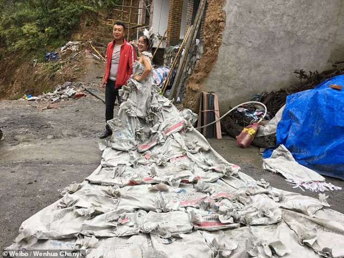 Tan Lili, 28 tuổi, sống tại một ngôi làng ở thành phố Lũng Nam, tỉnh Cam Túc, Trung Quốc là người đã tự thiết kế và may chiếc váy cưới dài thướt tha với 40 vỏ bao xi măng này. Tan kết hôn với Yang Mingfei vào năm 2012 và họ đã có với nhau một cậu con trai.