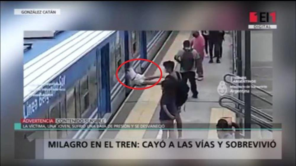 Người phụ nữ may mắn tên là Candela. Theo đoạn clip được trích xuất từ camera giám sát tại ga tàu, cô đột nhiên mất thăng bằng, sau đó ngã nhào xuống đường ray khi đoàn tàu đang lao tới Nhà ga Độc lập ở Buenos Aires, Argentina.