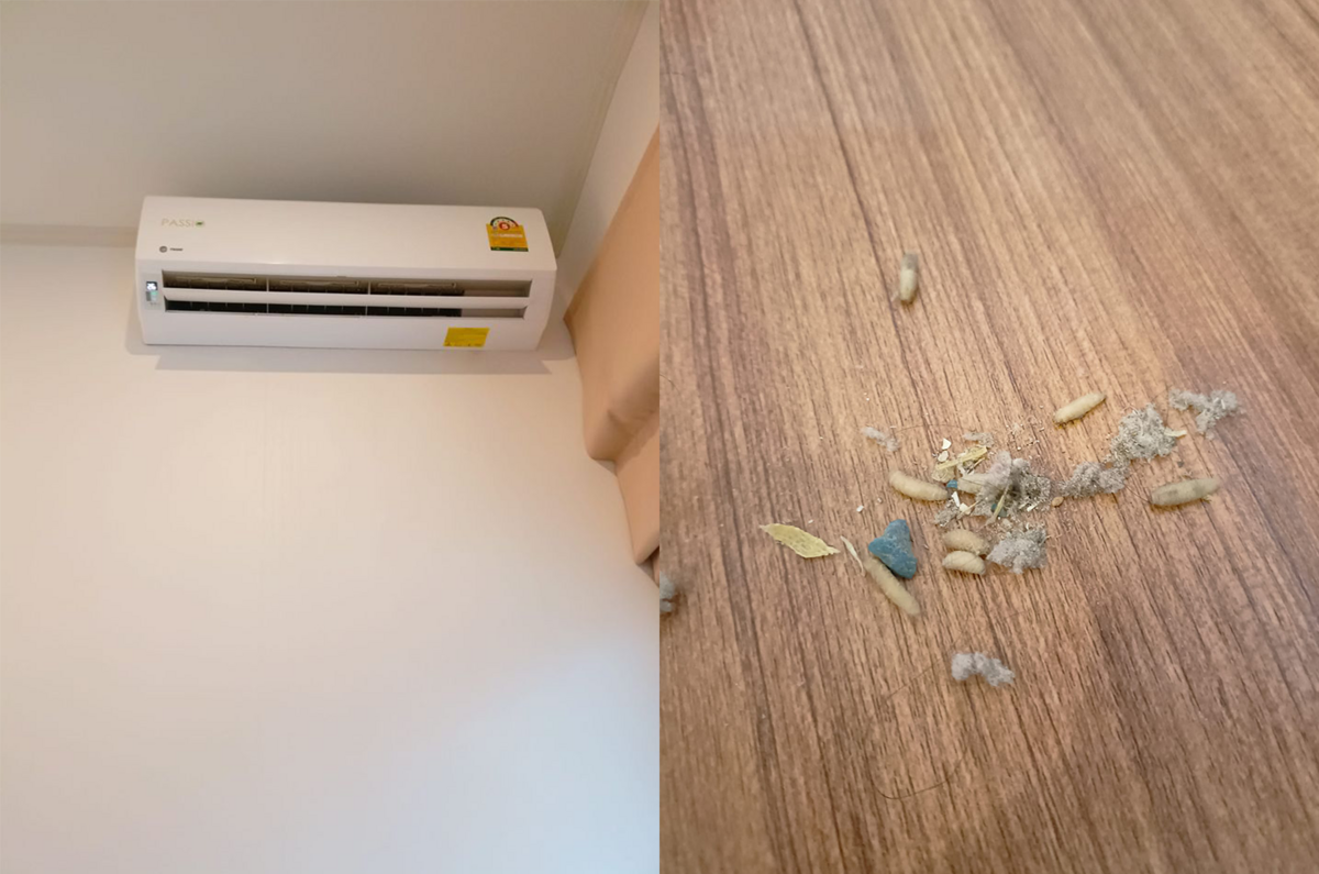 “Tôi nhìn lên và thấy ở chiếc máy lạnh. Trời ơi. Các con sâu thật sự rơi từ trên đó xuống. Thật đáng sợ, đêm qua chúng tôi đã ngủ với sâu cả đêm. Tôi không biết chúng có chui vào tai con tôi không. Dù tôi vệ sinh máy lạnh định kỳ mỗi 6 tháng và giặt chăn mền đều đặn, nhưng chuyện này vẫn xảy ra”.