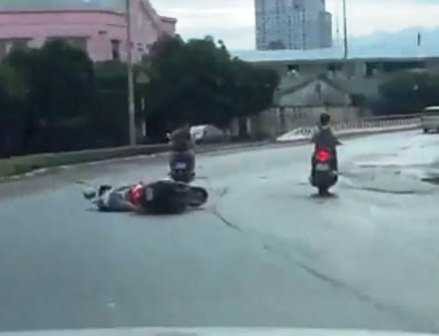 Bị giật túi xách bất ngờ, cô gái giằng co quyết liệt với 2 tên cướp khiến chiếc xe gắn máy do người nước ngoài điều khiển loạng choạng rồi ngã xuống đường. Do xe chạy với tốc độ khá nhanh nên cô gái bị văng ra xa, đập đầu xuống đường bất tỉnh.