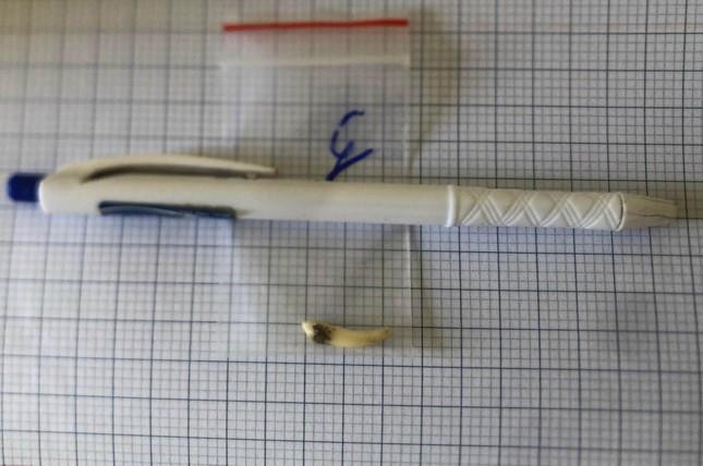 Chiếc răng mọc ngược được lấy từ hốc mũi bệnh nhân.