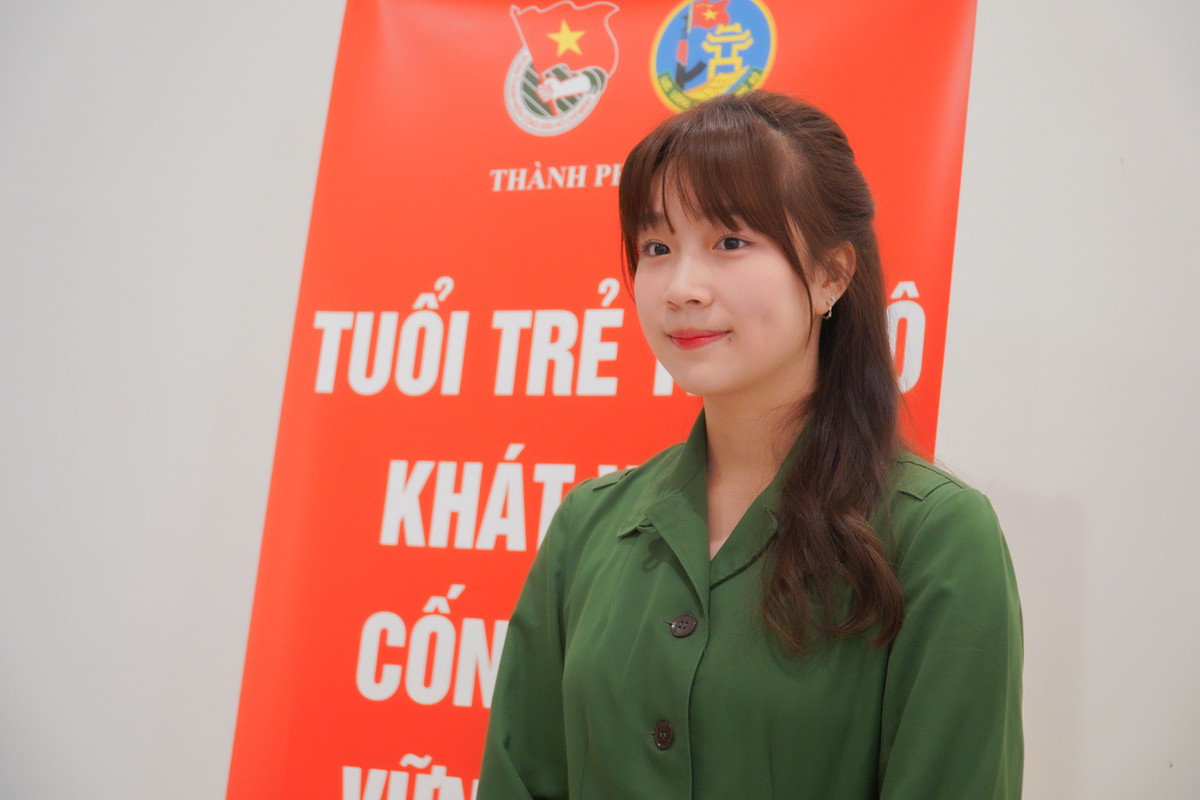 Tại buổi gặp mặt những thanh niên Hà Nội tình nguyện lên đường nhập ngũ năm 2025, trong hàng chục nam tân binh thấp thoáng bóng dáng cô gái nhỏ nhắn với gương mặt sáng và ánh mắt đầy tự hào. Cô là Lưu Thanh Vy (25 tuổi, ở phường Văn Chương, quận Đống Đa), người tạm hoãn việc học thạc sĩ ngành Marketing tại Đại học Kinh tế Quốc dân để lên đường nhập ngũ.