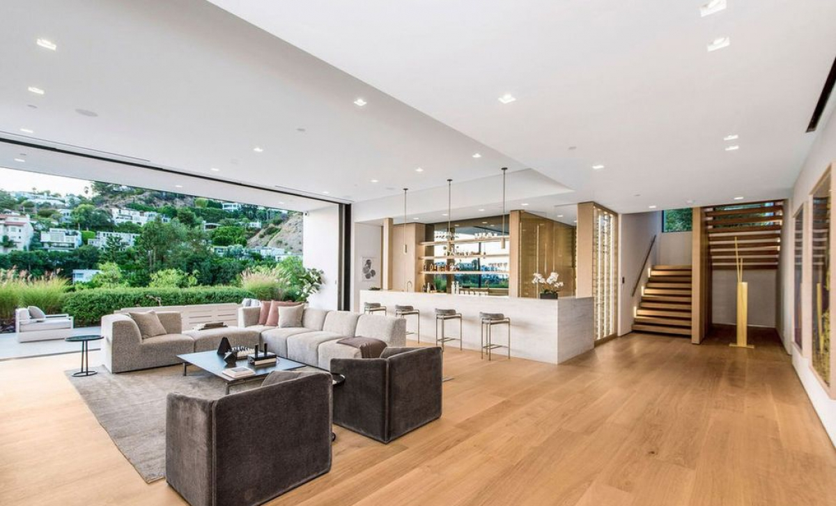 Căn biệt thự ba tầng hiện đại có tầm nhìn bao quát thành phố từ không gian sống. Khu vực sinh hoạt rộng rãi với những bức tường kính bao phủ giúp chủ nhân có thể nhìn ngắm thành phố Los Angeles từ trên cao.