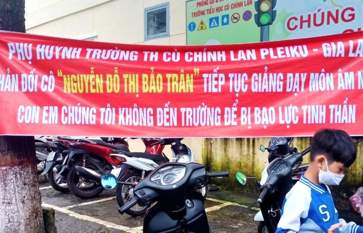 Tuy nhiên, trong khi TP Pleiku chưa báo cáo kết quả xử lý, ngay trước thềm năm học mới, vào sáng 29/8, trước cổng Trường Tiểu học Cù Chính Lan xuất hiện băng rôn ghi dòng chữ "Phụ huynh trường Tiểu học Cù Chính Lan, TP Pleiku – Gia Lai phản đối cô N.Đ.T.B.T tiếp tục dạy môn âm nhạc. Con em chúng tôi không đến trường để bị bạo hành tinh thần".