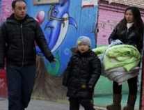 | Gia đình cô Wang đưa con trai ra khỏi trường hôm 6- 1. |