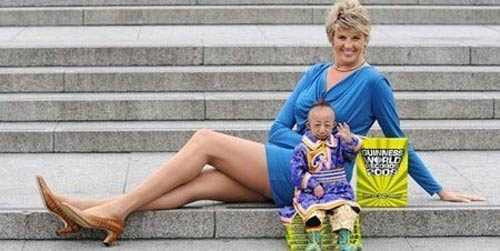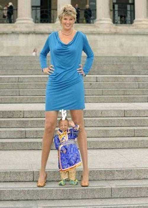 | Svetlana Pankratova chụp cùng người đàn ông nhỏ nhất thế giới He Pingping tới từ Trung Quốc. |