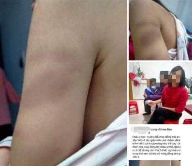 Khoảng 19h50 ngày 2/1, tài khoản N.B đăng thông tin trên Facebook với nội dung: “Cháu em học trường Tiểu học Đồng Thái (huyện An Dương), lớp 1A2. Cô Nguyễn Thị Yến giáo viên chủ nhiệm lớp đánh cháu em tím hết cánh tay, mông như thế này, còn bảo đánh nhẹ, mùa đông rét cháu bị thế em sang nói chuyện tử tế nhưng còn thách thức người nhà em kiện, mọi người thử xem cô này có xứng đáng làm giáo viên không...”.