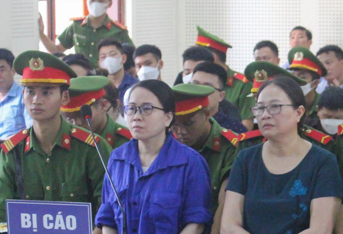 Bị cáo Lê Thị Dung (trái) và bị cáo Lê Thị Hương. (Ảnh: T.A)