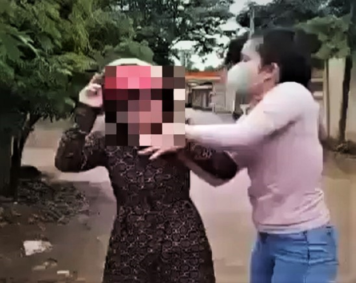 Trước đó, mạng xã hội xuất hiện hai đoạn clip, ghi lại cảnh một người phụ nữ bị cô gái mặc áo hồng hành hung giữa đường. Cô gái áo hồng liên tục tát vào đầu, vật ngã rồi lôi kéo đối phương trên đường, miệng không ngừng chửi bới: "Đồ phá hoại hạnh phúc của hai đứa con tao..."