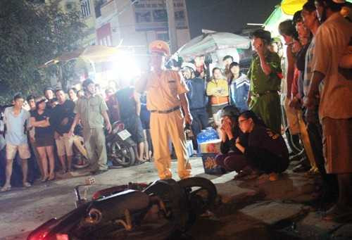 Tại hiện trường, chiếc xe máy bị hư hỏng nặng, những thùng bia, nước ngọt trên xe nạn nhân văng tung tóe trên mặt đường. Cách đó không xa là thi thể anh Tùng bị xe cán chết, mũ bảo hiểm bị cán nát.