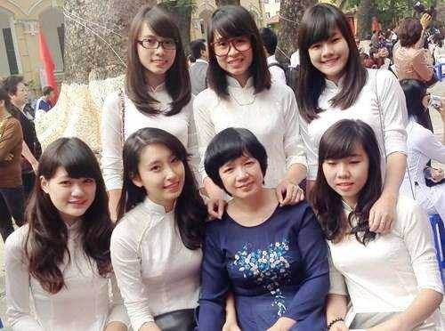 | Cô Trịnh Thu Tuyết - giáo viên ra đề Văn về vụ việc Trung Quốc đưa giàn khoan trái phép vào vùng đặc quyền kinh tế của Việt Nam bên các học sinh trường THPT Chu Văn An |
