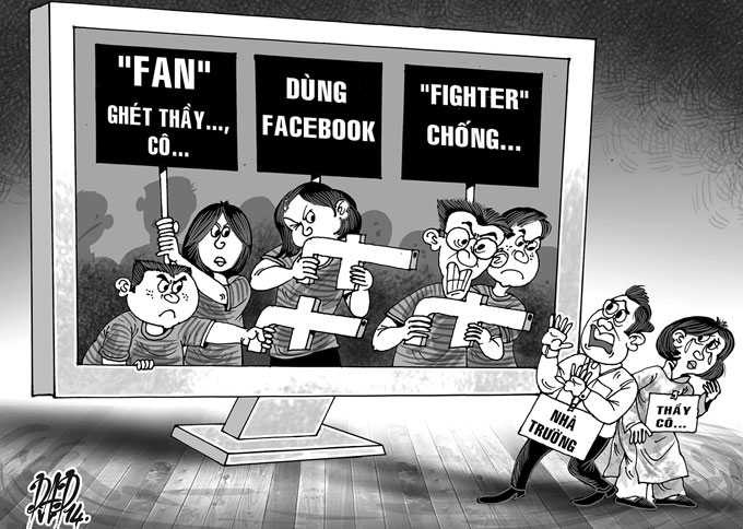 Hậu quả xảy ra là các em đã hẹn gặp nhau để giải quyết những mâu thuẫn, xung đột bằng những hành động bạo lực trong học đường. Chỉ trong vòng một năm mà tôi đã chứng kiến trong trường của tôi xảy ra liên tiếp các vụ việc học sinh cũng chỉ vì nói xấu nhau trên Facebook đã dùng lưỡi lam rạch mặt nhau, đánh đá, cấu xé nhau (đối với nữ), còn các nam sinh thì hẹn ra sau cổng trường để “thanh trừng” nhau (theo cách gọi của các em).