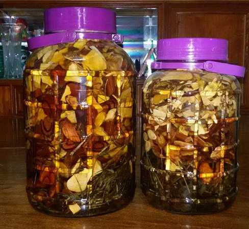 Thuốc ngâm rượu bổ dương cho đàn ông, mà bố cô giáo Minh truyền lại, bây giờ chị vẫn làm cho mọi người gồm khúc khắc, ba trành, y tú lán, trai co lạn, kíp cong... và thành phần chính là nấm hết pì lìn.