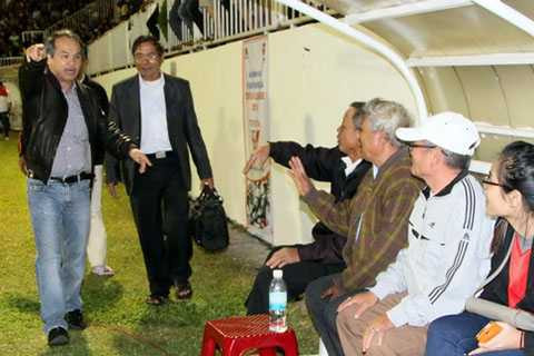 | Bầu Đức xuống sân mời những người không có vé hoặc có vé nhưng mất chỗ lên khán đài |