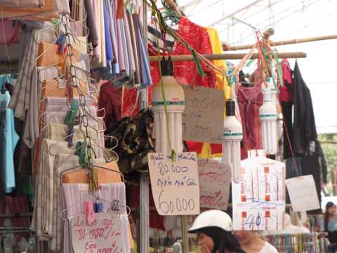 Kế đến là chất lượng sản phẩm, các gian hàng phần lớn bày bán những sản phẩm rẻ tiền với nhiều bảng quảng cáo thu hút khách như hàng giảm giá, hàng thanh lý, mua 5 tặng 1, giảm giá 50%...