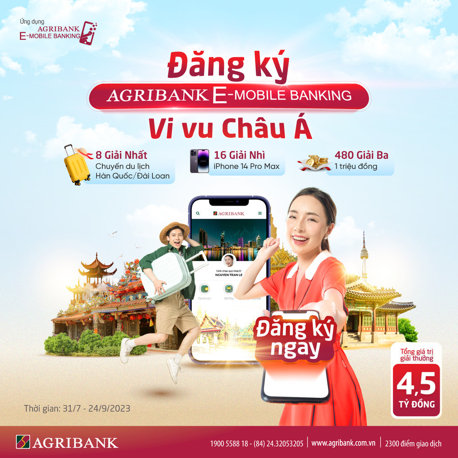 Agribank phối hợp với VNPAY triển khai chương trình khuyến mại “Đăng ký Agribank E-Mobile Banking - Vi vu Châu Á” với nhiều ưu đãi hấp dẫn giúp gia tăng trải nghiệm và tối ưu chi phí cho khách hàng mới.