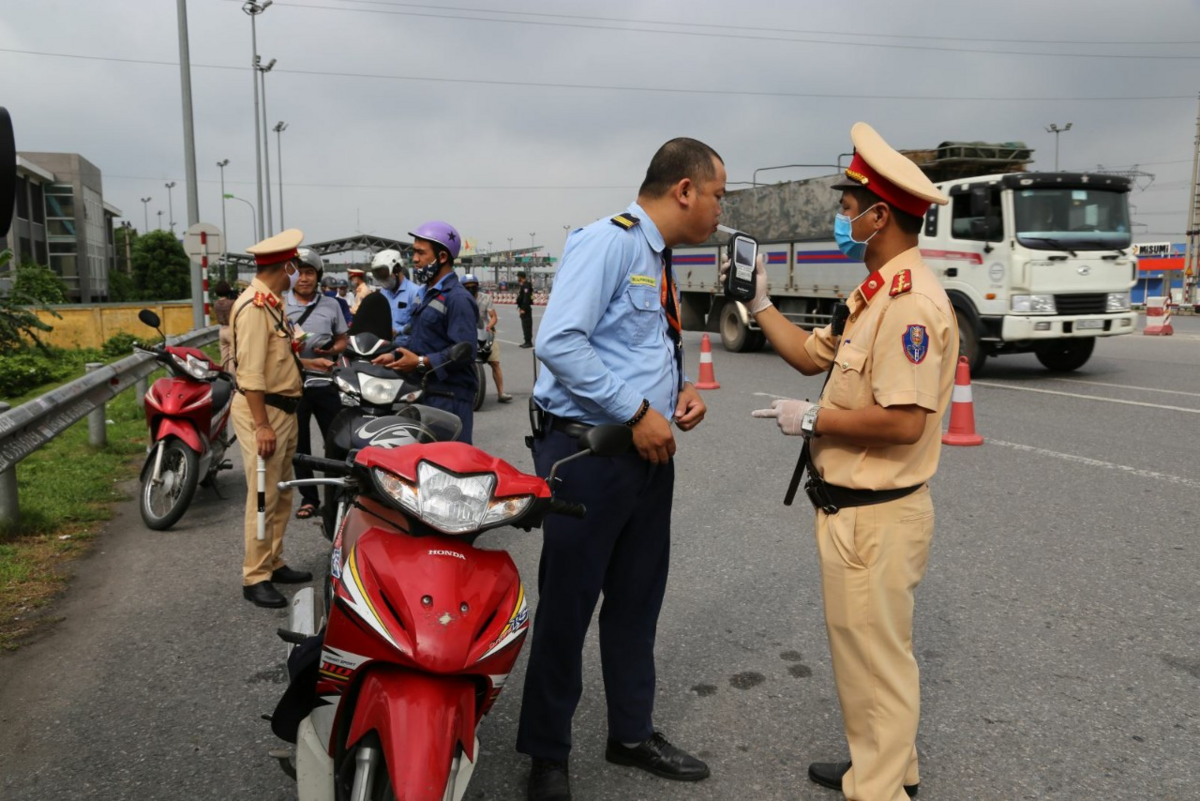 Công an Bắc Ninh kiểm tra nồng độ còn đối với tất cả phương tiện trên Quốc lộ 1A.