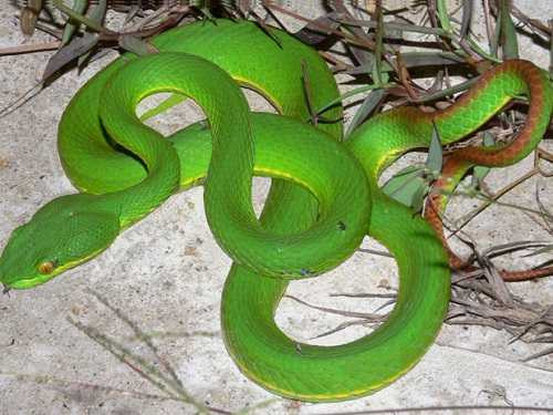 Đang điều trị tại bệnh viện Đa khoa Quảng Ngãi, ông Nguyễn Văn Sơn (60 tuổi, trú thôn Phước Hòa, Bình Trị, Bình Sơn, Quảng Ngãi), kể: “Chiều 7/11, tôi đang nhổ cỏ cạnh trụ điện trước nhà thì bị con rắn to bằng ngón tay út, thân có màu xanh chuối non, đuôi màu đỏ cắn. Loại rắn này tôi gặp nhiều rồi. Bình thường nó rất hiền, nhưng nếu đụng vào nó thì nó cắn liền. Loại nọc của rắn này rất độc nên nếu không chữa trị kịp thì rất nguy hiểm đến tính mạng”.
