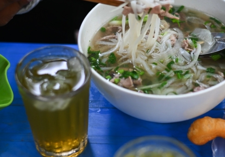 Nhiều ý kiến cho rằng việc uống trà đá khi ăn phở có thể khiến mỡ vón cục, gây hại cho sức khỏe. (Ảnh minh hoạ)