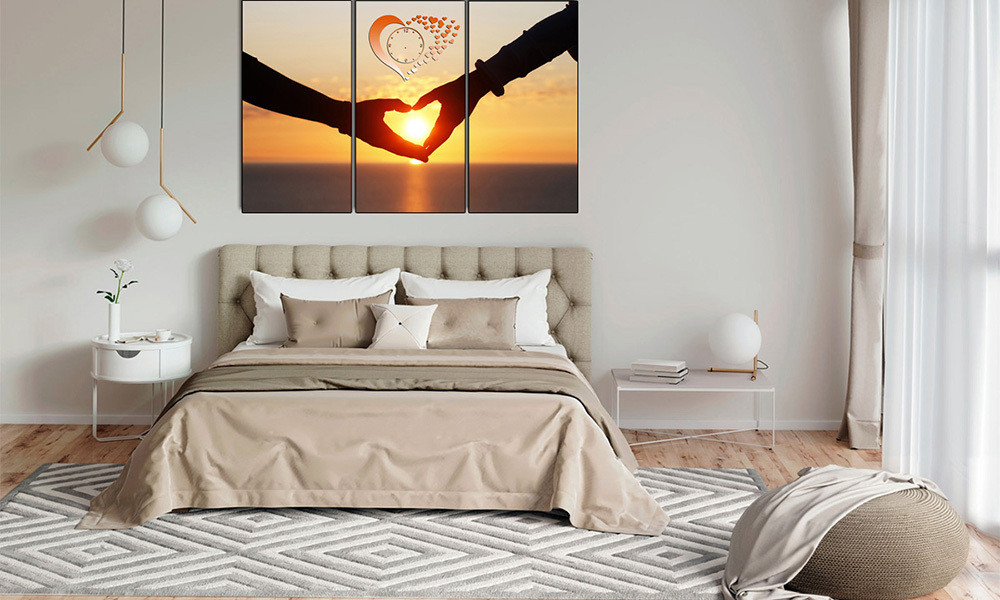Ảnh cưới treo đầu giường phải đảm bảo chắc chắn, kích cỡ vừa phải.