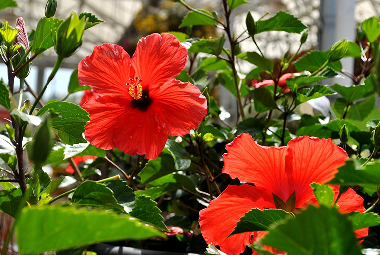 Hoa dâm bụt được trồng nhiều ở khu vực công cộng. (Ảnh: T.H)