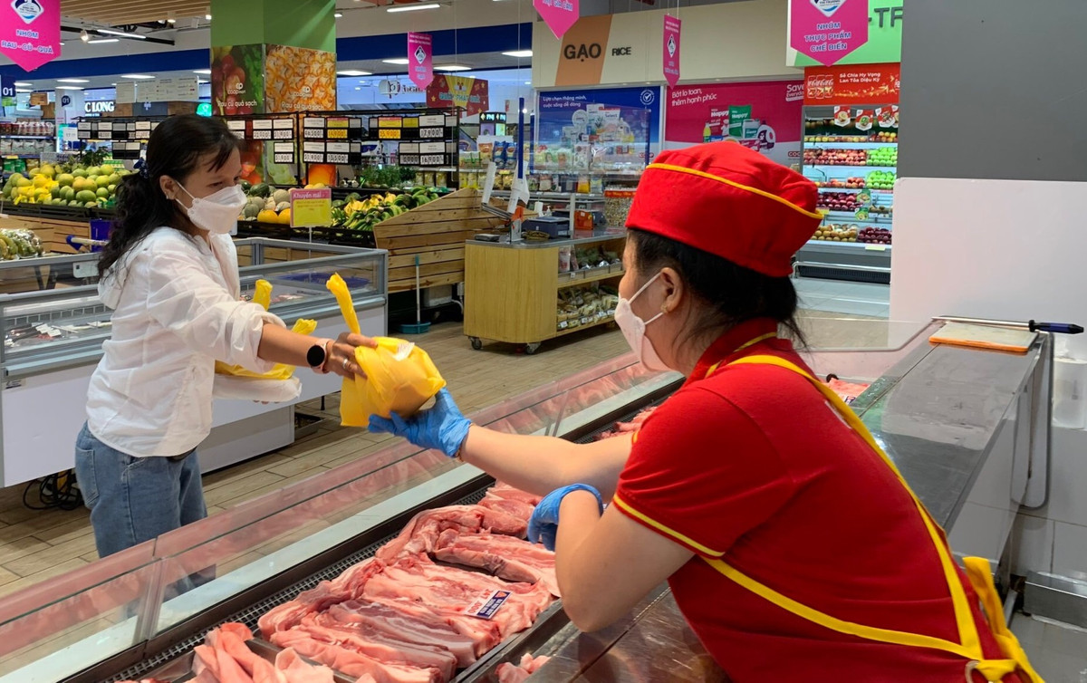 Khách hàng chọn mua thịt heo tại quầy thịt Vissan trong hệ thống siêu thị Co.opmart.