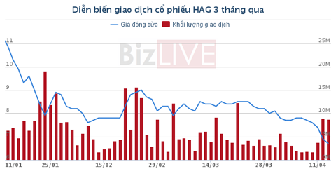 Hiện thị giá của công ty cổ phần Hoàng Anh Gia Lai (HAGL – mã HAG) và CTCP CTCP Nông nghiệp quốc tế Hoàng Anh Gia Lai (HNG) ngang ngửa nhau và rớt ở mức 6.600 – 6.700 đồng/cổ phiếu.