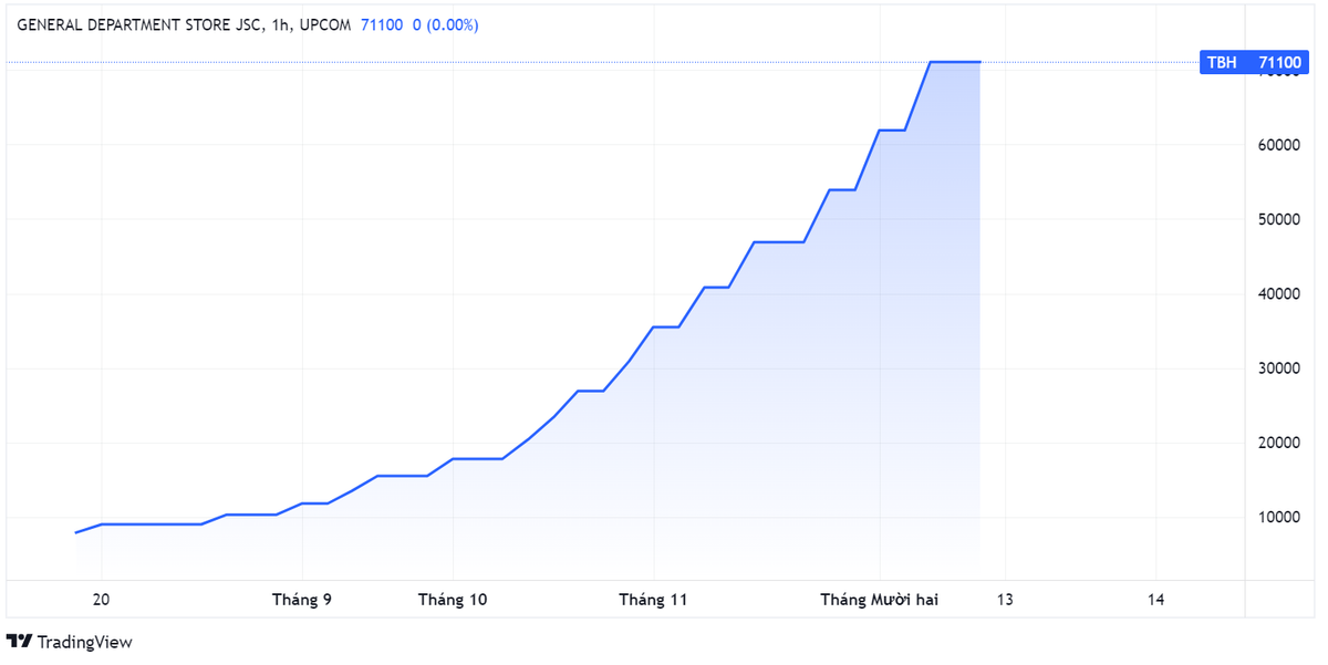 TBH tăng trần trong tất cả 17 phiên có giao dịch kể từ khi lên sàn. Đồ thị: TradingView. |