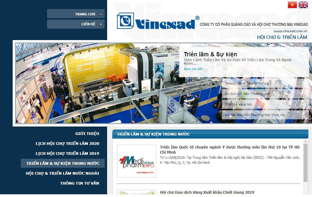 Vinexad hoạt động chủ yếu trong các lĩnh vực tổ chức hội chợ triển lãm, tổ chức sự kiện, cho thuê biển quảng cáo, cho thuê bất động sản... (Ảnh chụp màn hình).