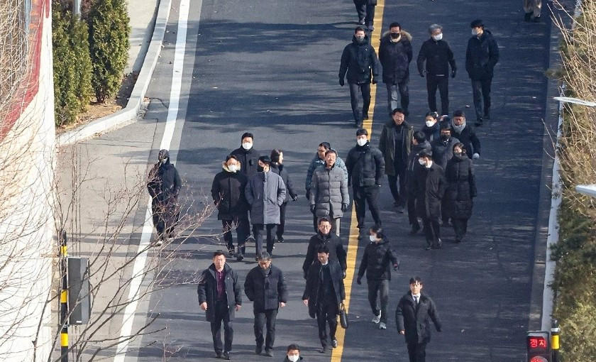 Các nhà điều tra và sĩ quan cảnh sát rời khỏi nơi ở chính thức của Tổng thống Yoon Suk-yeol ở Seoul ngày 3/1. (Ảnh: Yonhap)