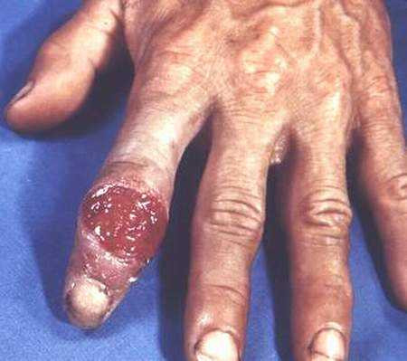 Tổn thương trên tay do bệnh giang mai.