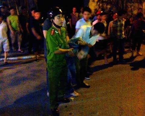 | Lực lượng Công an khống chế, dẫn giải đối tượng về trụ sở Công an phường điều tra làm rõ |