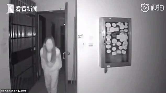 Người phụ nữ đi khom, ngó nghiêng trước khi nhổ nước bọt vào tay nắm cửa nhà hàng xóm ở Vũ Hán.